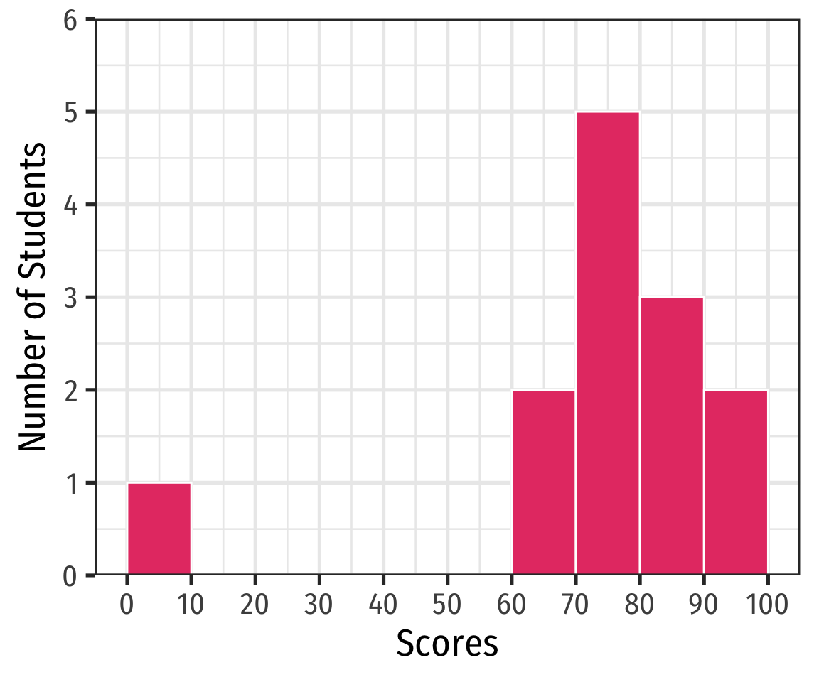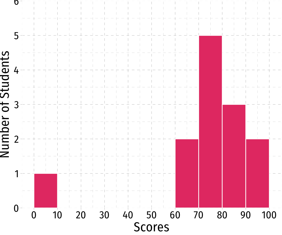 A class of 13 students takes a quiz (out of 100 points) with the following results: