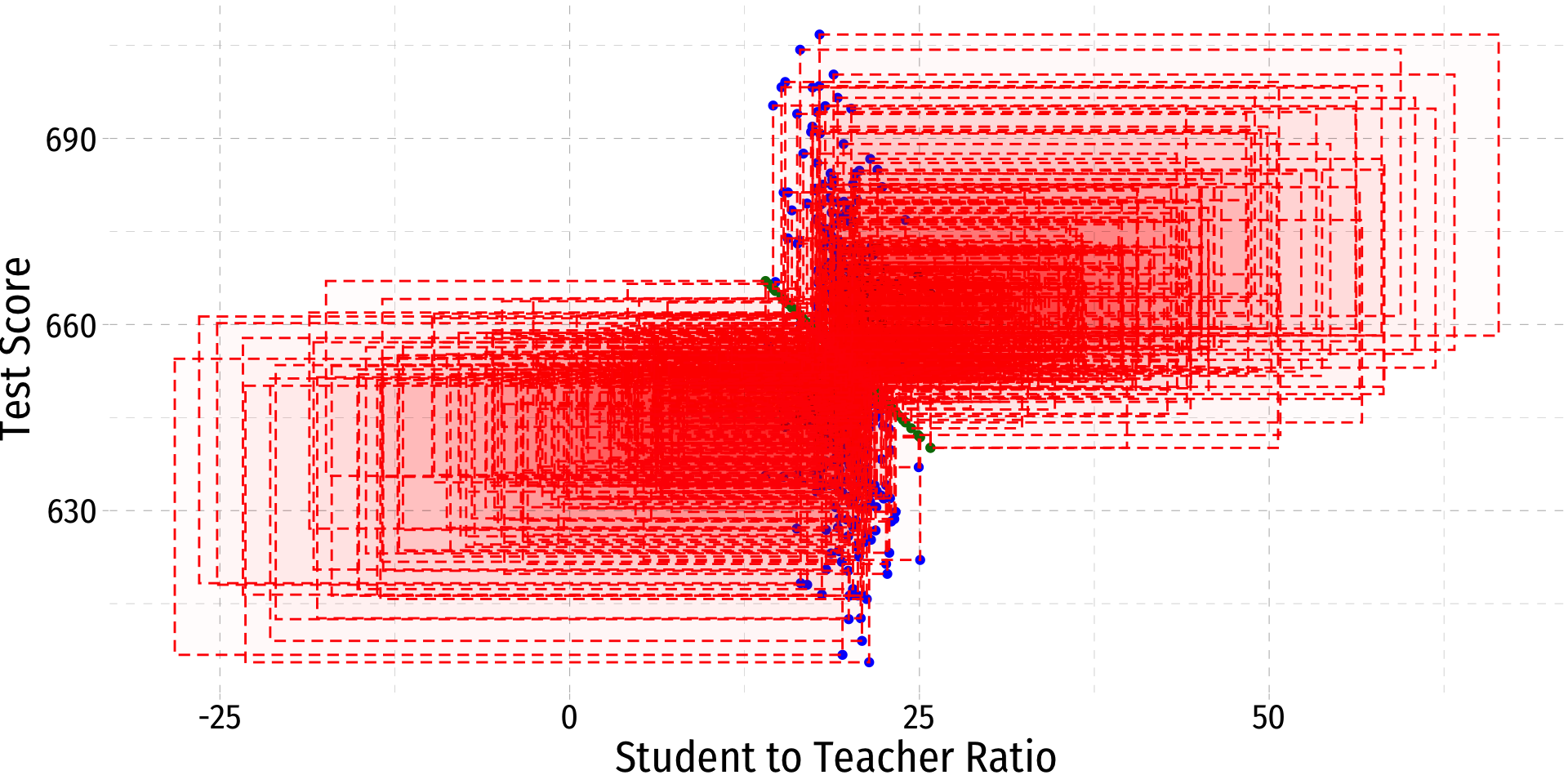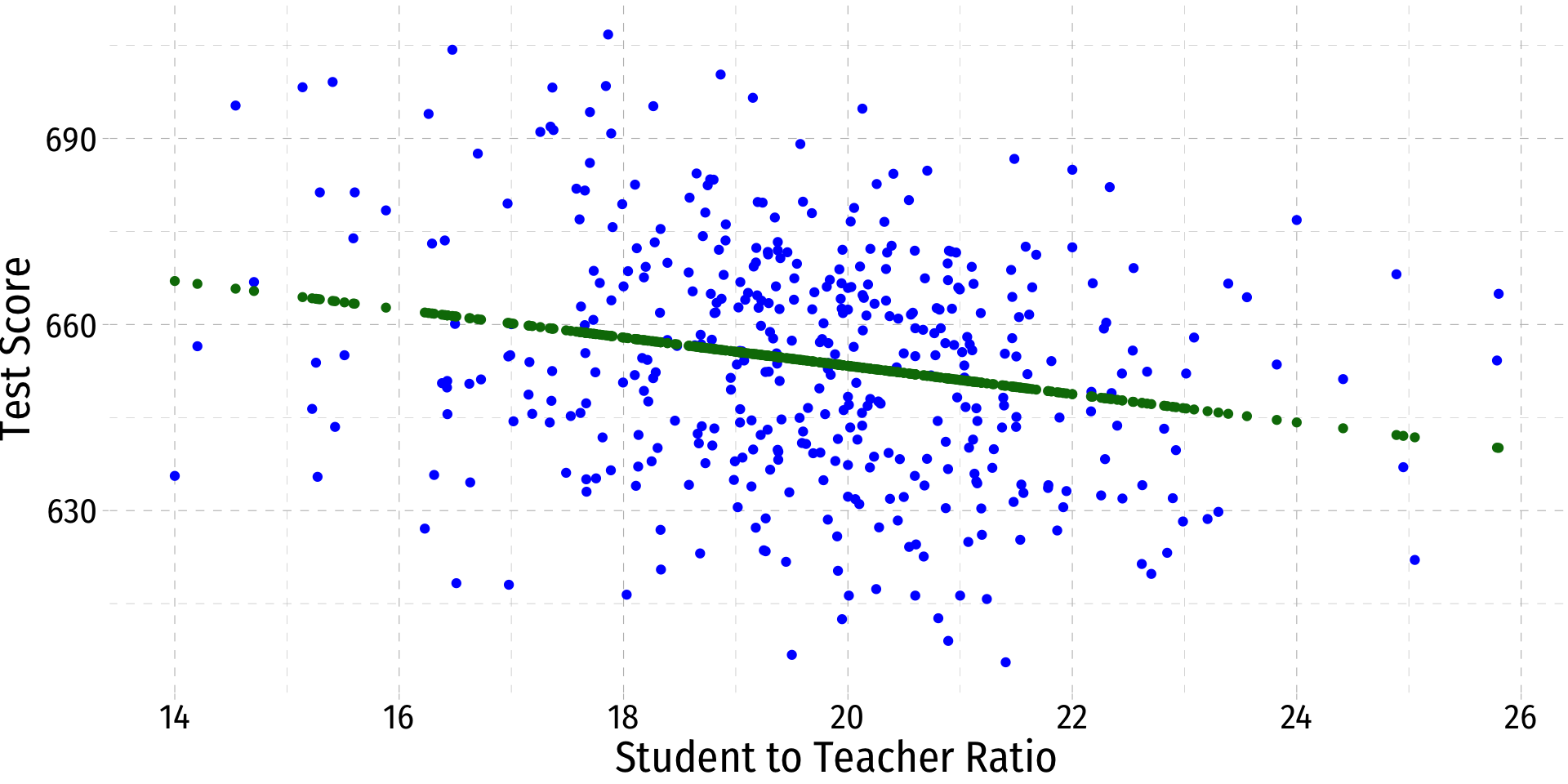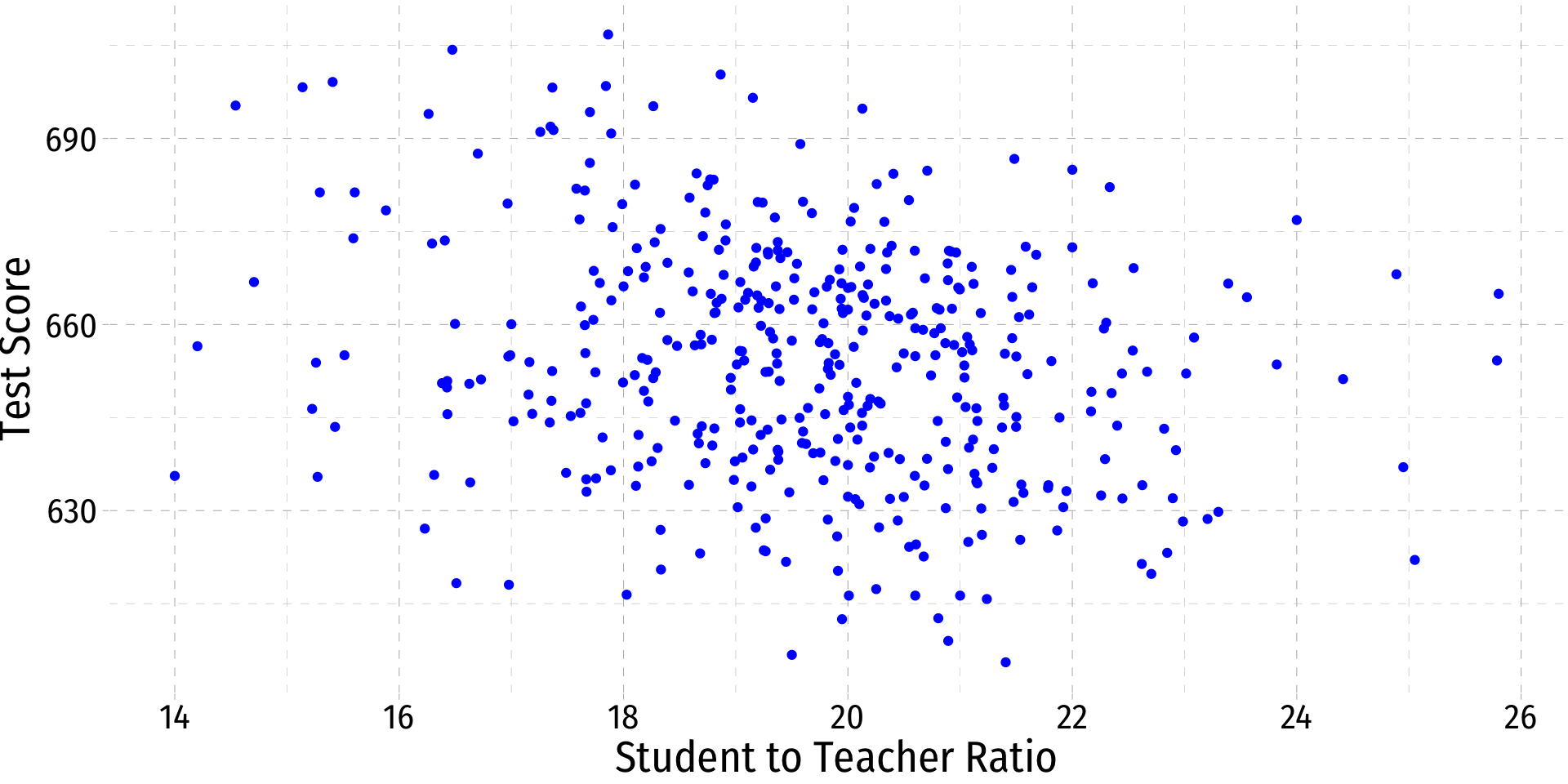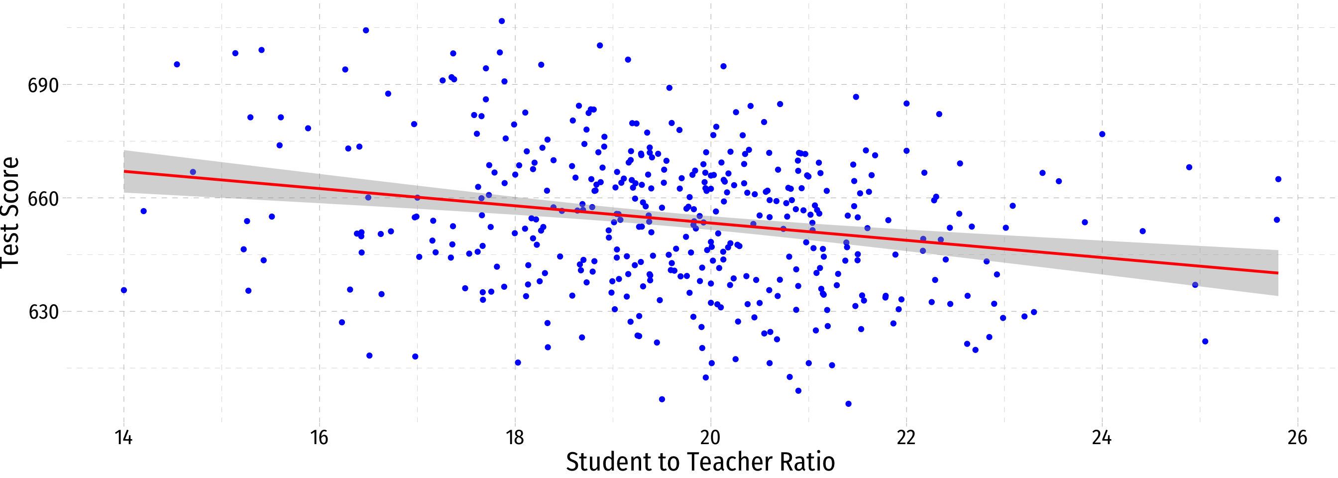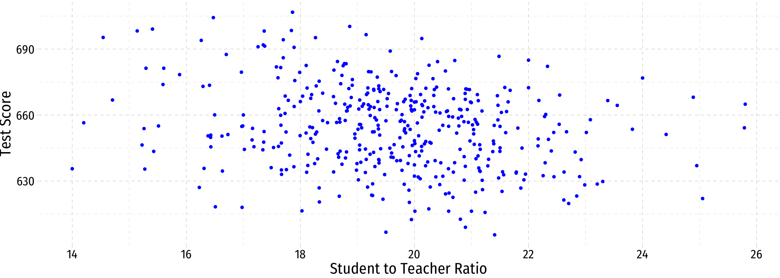\[\text{test score}_i=\beta_0+\beta_1 str_i\]
