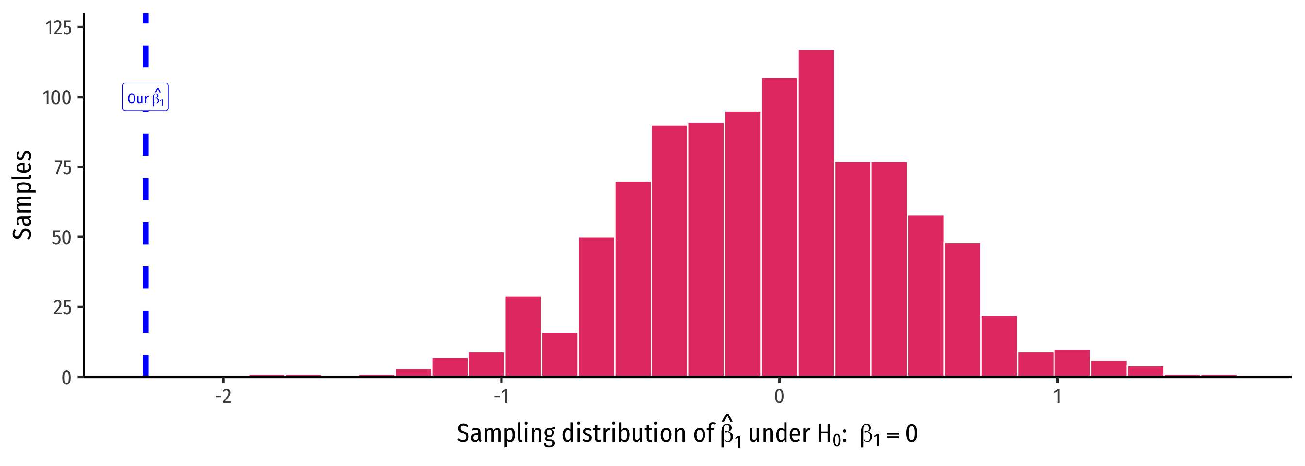 • Sample statistic (^β1) will rarely be exactly equal to the hypothesized parameter (β1)