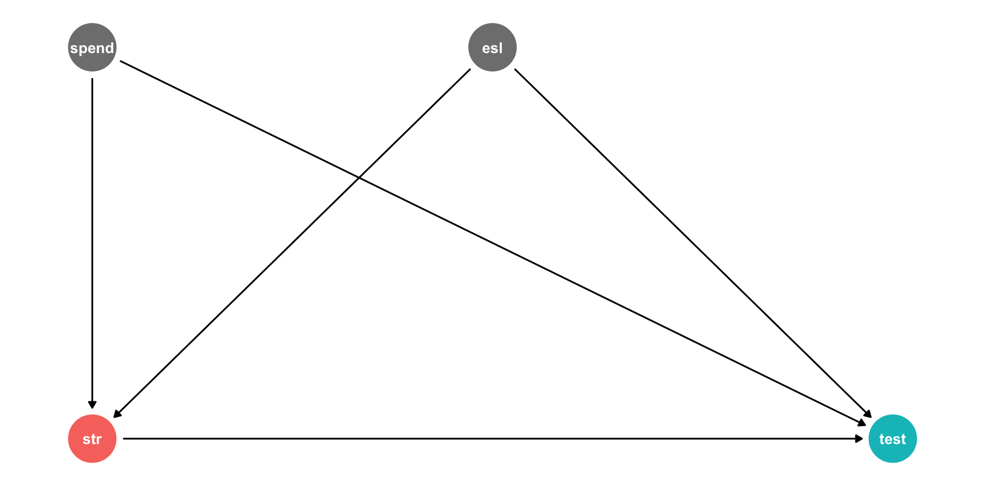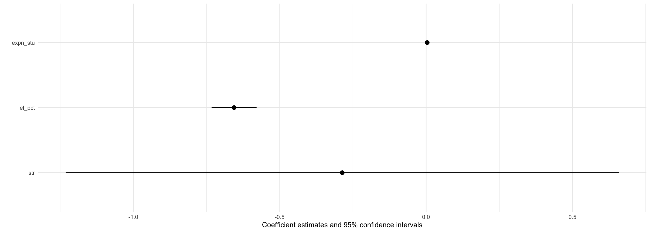 lm(formula = testscr ~ str + el_pct, data = ca_school)