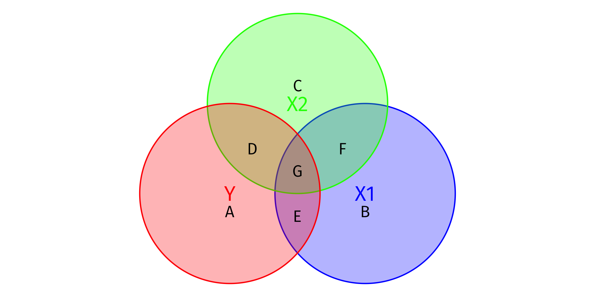 Yi=β0+β1X1i+β2X2i+uiYi=β0+β1X1i+β2(δ0+δ1X1i+τi)+uiYi=(β0+β2δ0⏟α0)+(β1+β2δ1⏟α1)X1i+(β2τi+ui⏟νi)